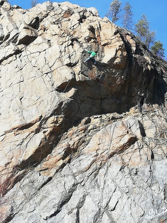 Yläköysilämppäseinä, kaksi ankkuria. Pultteja vaikea asentaa, eikä sovi trädinkään. Koska seinämä täynnä otteita ei siitä löydy selkeitä linjoja, morfo.