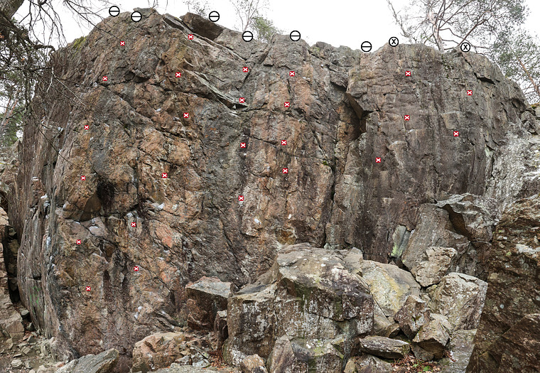 Svårt krux på slutet. Tre fyra moves kvar. Mycket lätt och snabbt att sätta topprep på från säker hylla.