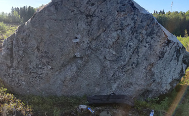 One boulder close to the road. Two sides with overhang that offers two problems and some projects. There will be some topo pictures soon.