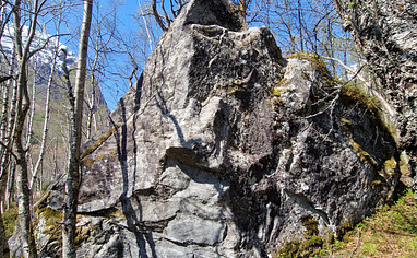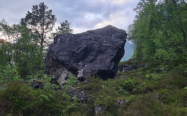 BRING WATERPROOF BOOTS! Park at the parking lot before the bridge. Walk towards Norangsdalen, but take a right before the the river. Walk into the forrest across the myre towards the boulders. Read more