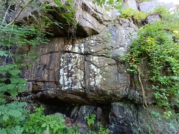 Sitt start under det nedre taket vid den sneda kanten(Fötter i taket) stenen under är exkluderad. Traverserar bort längs med kanten och går upp vid den bortre sprickan för att sedan traversera tillbaka för topp.