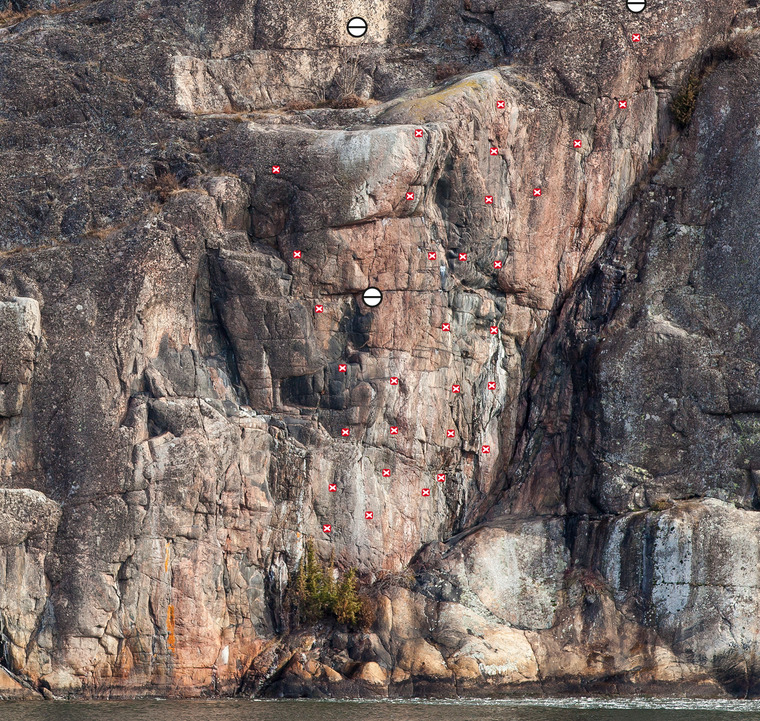 Did on top rope solo first and brushed up the crack and holds. Shares the same fingery start as Scylla then follows the crack directly up. Great moves near the top before the shelf that needed working out.. Hard to grade but 6c+/7a. Harder and scarier than Scylla.