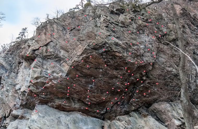 FA, eller är detta möjligen Plåtniklas med variantutsteg? Hårt krux, i övr jämn och fin pumpklättring. Förtjänar mer uppmärksamhet! Gick att klättra trots pissblöta grepp i övre delen.