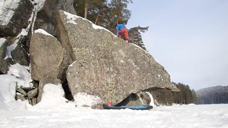 Low start with both hands on the stone under the overhang.