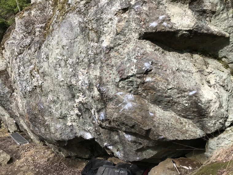 Sit start under roof, climb right into the stand and then straight up.