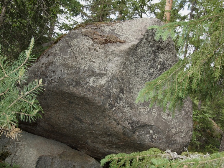 Route can be found near a pile of logs on the right.