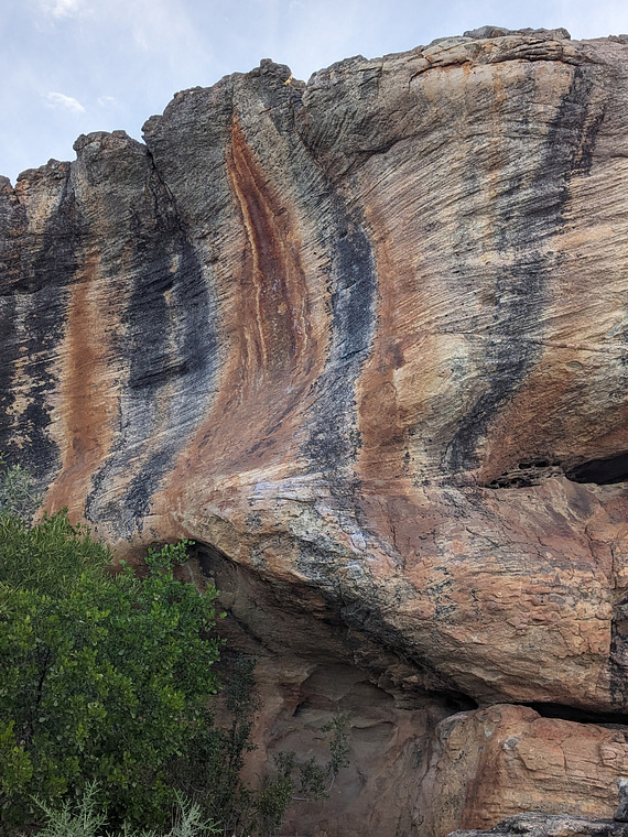 Start in legal faith but dyno straight up the red middle line to the ledge above (left of legal faith)