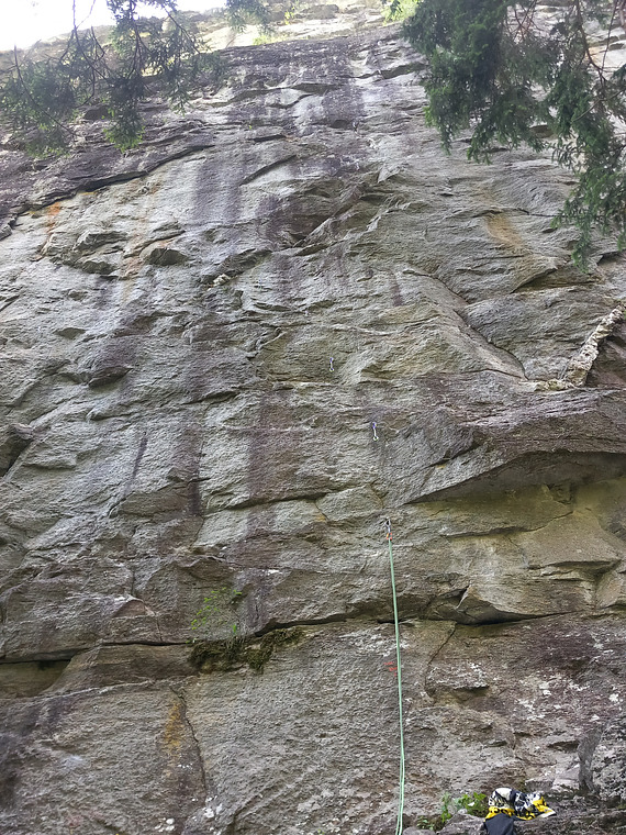 Very varied sequences, interspersed with rests. Some quite morpho-moves. Difficulty increases progressively, till the crux under the chain, where you'll need to lock off on small crimps.