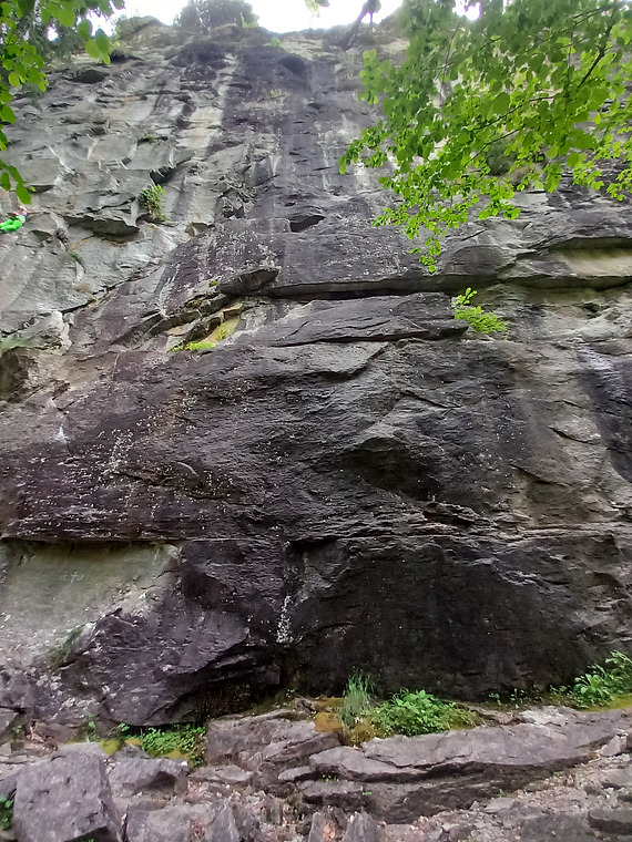 Hard finger boulder above the L1 chain (around 7A+), followed by a challenging flared arch (made easier by use of kneebar and kneepad after the F.A. without them). A final little slab on tiny holds requires focus and decisiveness to reach the chain.