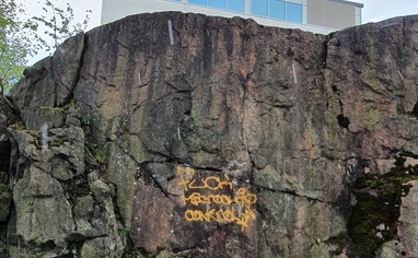 A nice city crag. Please folks behave – don't make noise or leave trash, etc. – it's a residential area. Apartments right across the street so be extra kind. Also be aware of dog poop on the lawn. Crag mostly dries slowly after rain because of vegetation and water emitting cracks, except for maybe kettu, rotta and koala.