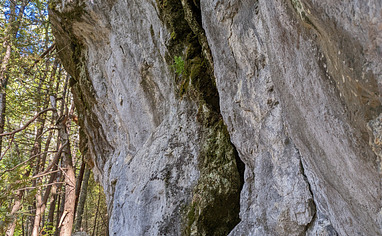 Follow the longest trail indicated on the billboard at the entrance. Once, you've passed the bridge, it's about 6-7 mins of walk in the woods. Follow the red trees until you see a giant Boulder. Read more