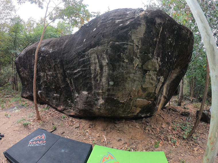 Sit start using a big side flake. Crimp your way up to sloper top-out.