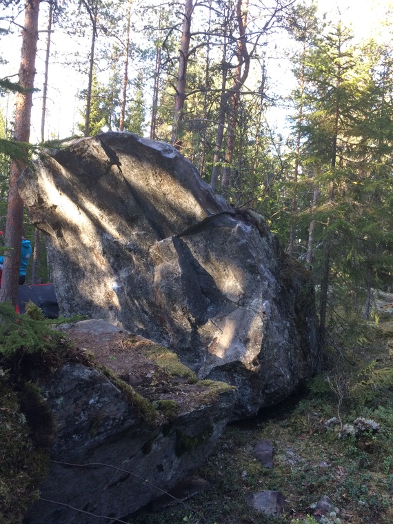 lähtö pienemmän kiven tasalta molemmat kädet isolla hyllyllä.