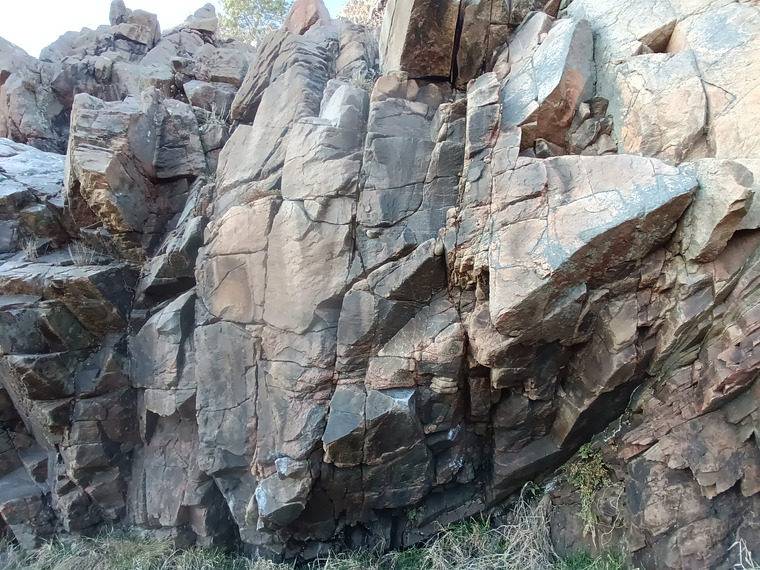 Sitt/ligg start längst ner på sista hyllan i takdelen. Följer sedan kanten hela vägen till höger längs med grottan. Toppar sedan ut på det stora slab liknande flaket (högra väggen är exkluderad).