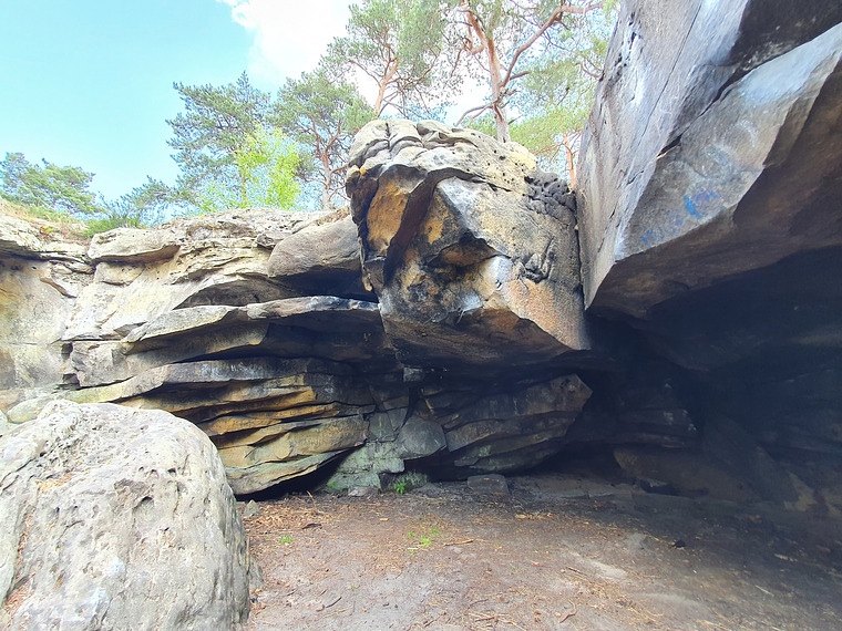 Start back in roof, climb right and finish in Béatrix's Nose, without using the HUGE left flake.