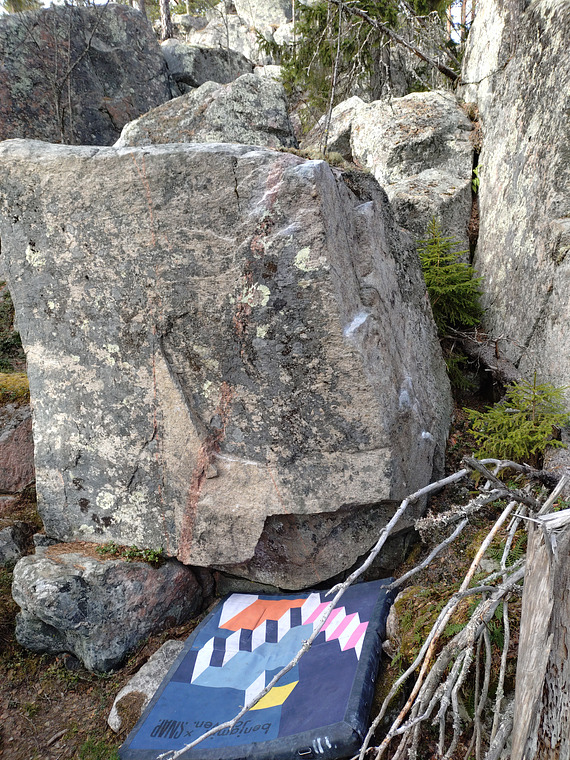 Ss in pit formed by thw two rocks, on picture ass on right side of the pad and ypur good to go :)