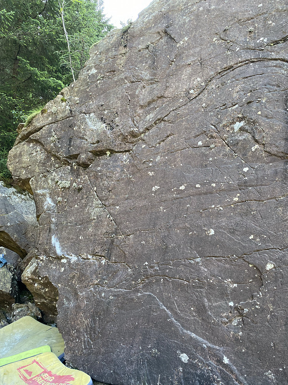 Sit start under the arête with low crimps. Climb up the arête before pulling onto the slab. Top out straight up