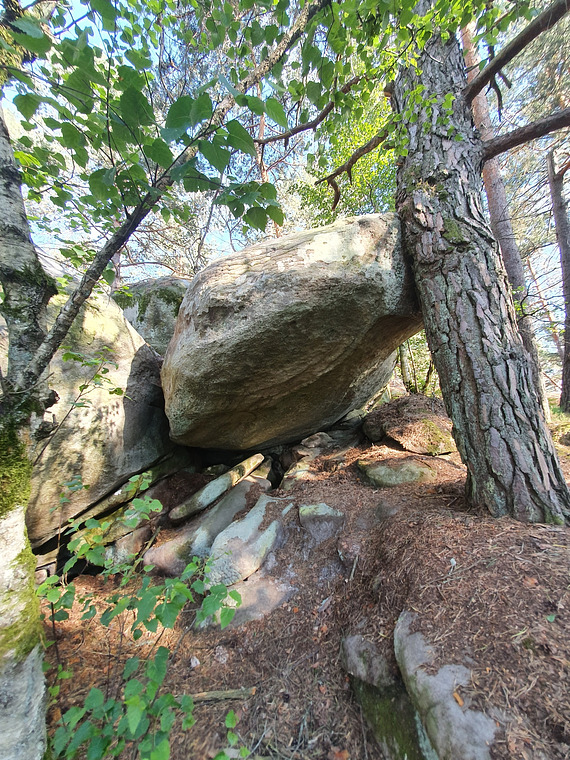 Stand start from good hold. Mantle next to tree.