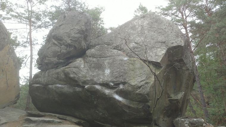 Sit start. Traverse left, exit after the arete in the slab Minnie Petite Souris.