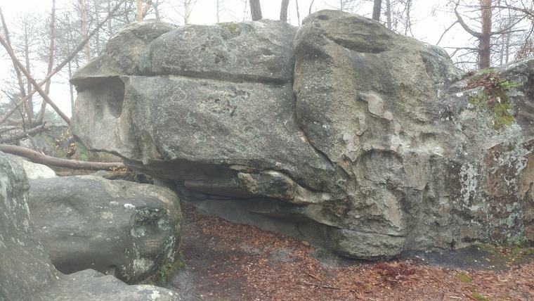 Weird one: Start above the mega hold. Downclimb the roof to the left and traverse under the roof to the right and exit in Clacuettes.