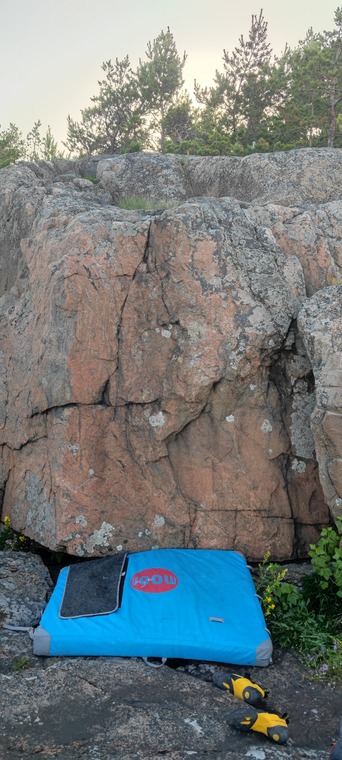 Sit start, follow the crack up, low ledge on the right eliminated