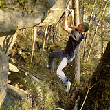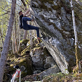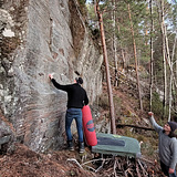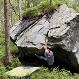Granite Boulders. Smooth holds. In forest. Very short approach.