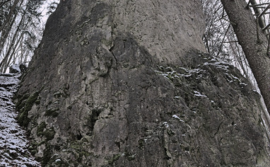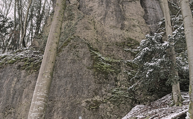 This crag is located at the north facing riverside of Wiesent around the mill "Sachsenmühle". Comming from West drive up Wiesent-valley via "Ebermannstadt". The mill is 14 km after "Ebermannstadt". Coming from East/North drive down Wiesent-valley via Behringersmühle. The mill is 2.7 km behind "Behringersmühle". At the mill there's a road branching of leading over a bridge towards "Gößweinstein/Leutzendorf". Take that road and turn right after the rail road crossing into the forest road. Leave the car after 80 meters. For further parking drive the road ahead after rail way crossing. There are several possibilities.