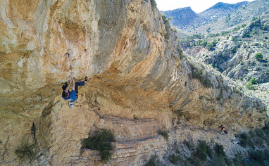 This crag can be found 8km west of sax. You can park at the bottom on the end of the first dirt road near some houses. Another option is to follow the dirt road up to the base of the crag but beware the road is in worse condition and not every car will make it up to the top! For a detailed discription see crag map.