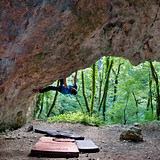 Nice cave with many overhanging lines on rough limestone.