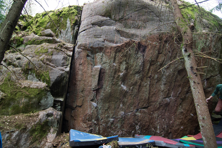 (Orobanche) Sitstart. Traverse from ok crimp to jug behind the corner at right.