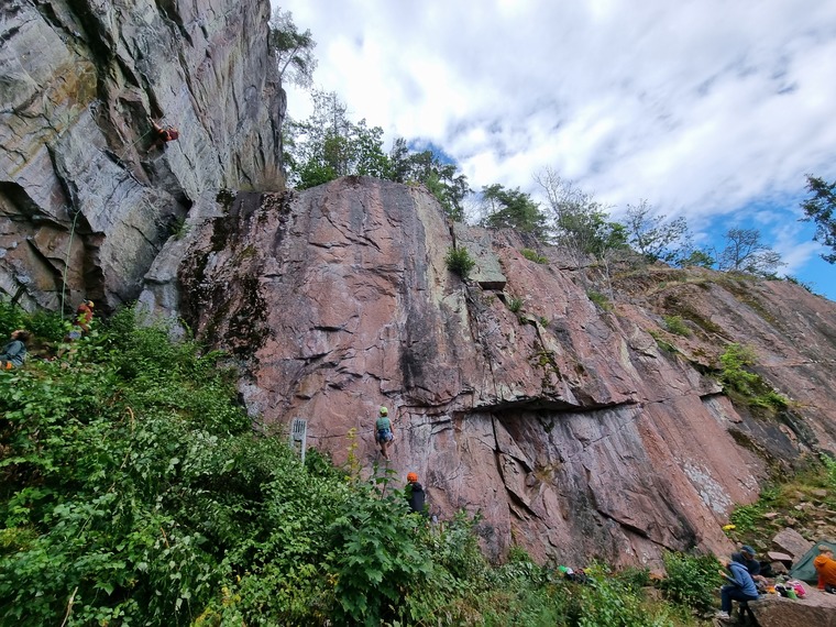 Värd att göra, kul att stemma mot huvudväggen upp till andra bulten, sen fin klättring på slopers till toppen.