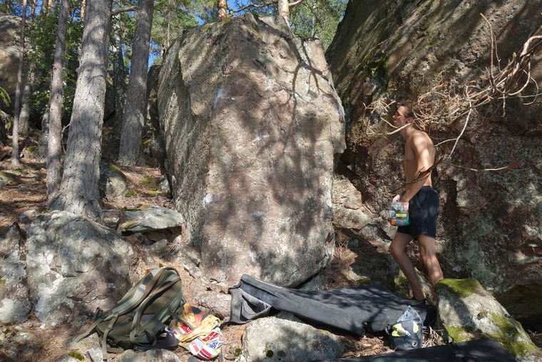 Sit. Straight up the face.