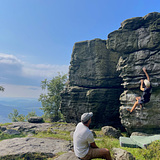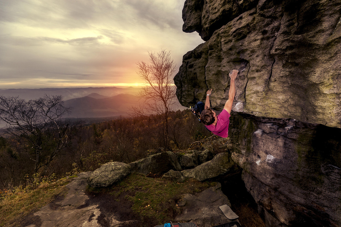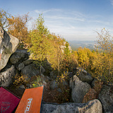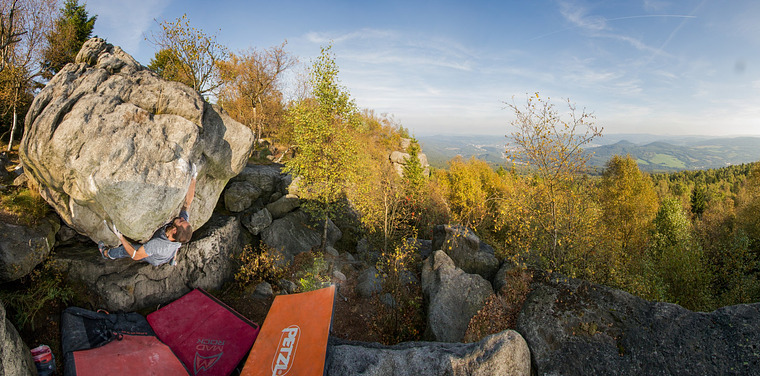 Sector Skalní město is close to the watchtower and restaurant. It is kind of a small rock city, where the height of the rocks reaches about 5 meters. There are about 90 easier problems. The sector is popular for beginners and families with children. There is a beautiful view of the sunrise, Dečín and Elbe Valley.