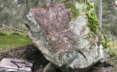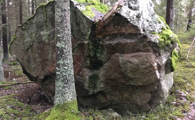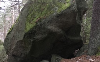 Most of the boulders are reached by walking along the wide gravel road towards Rönninge By. Only permitted local vehicles are allowed on this road. Trackside boulders are the first encountered directly beside the road. Lost boulders and Svampblocket are on the left (east) side of the road. Bäverblocket and the other blocks are up the hill on the right (west) side. Secret Garden is on the edge of the large field close to Rönninge By. Reach these boulders by going through the electrified wire gate at the last bend in the road before Rönninge By and crossing the field towards the lake.