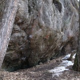 The crag is situated in a little forest at Gustavsberg 20 km east of Stockholm and is surrounded by huge boulders giving the place an enclosed and cave-like character. You don't see the wall until you have walked into this "cathedral" and have the big wall in front of you. In the middle of the "cave" there is a large fireplace with benches where many people can sit.