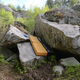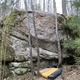 Bulderet ligger helt til høyre på veggen over de andre steinene. Sittstart. Evnt Høyre hånd på kant og venstre på sidepull om du ikke rekker opp. Toppes på høyre side av eggen. Lettere versjon traverseret videre rundt og så opp. 4/5