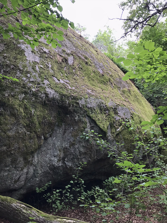 Highball project to the right of Jawbreaker (opposite Istiden boulder) - sit start in the overhang then continue up on the gigantic slab. Plenty of slab potential here.