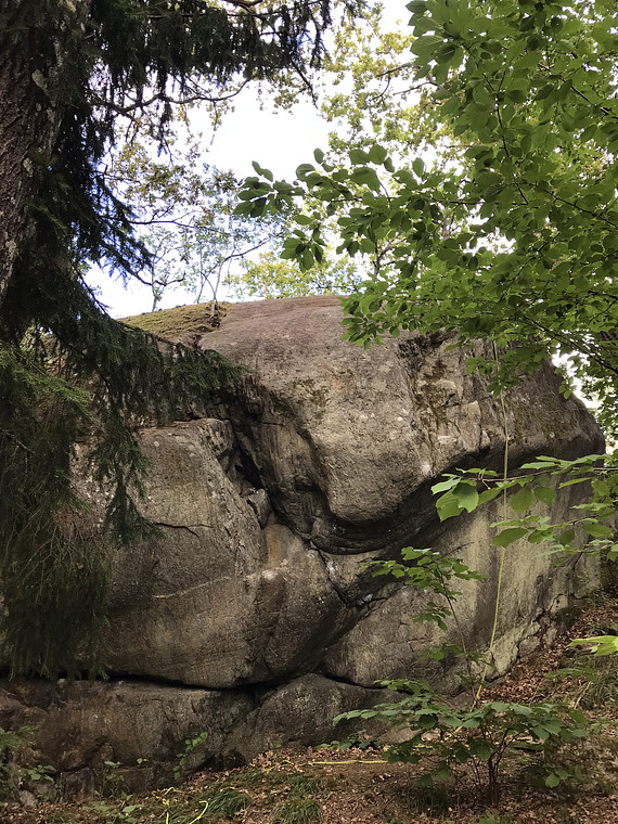 Standing start with big weirdly shaped undercling and whatever crimp you like on the face. Climb straight up to the sloper ramp, finish right.