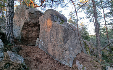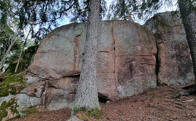 Nice and cosy bouldering hangout with a few good ones, both easy and some harder. Some very low.