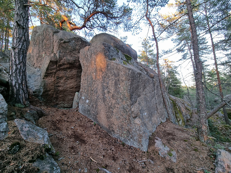 Övre klippblocket, till vänster om hörnet. Gå rakt upp vid sprickan och kliv upp på klippblocket.