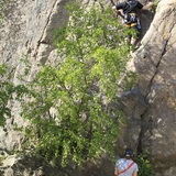 The cliff directs to south-west and has very open front so it dries incredibly fast after rain. It can also get quite hot during sunny summer days. The rock is coarse, finger tearing granit. Be aware that despite the fact that most routes are bolted, some routes miss anchors. Fixing of a top rope or belaying point to tree is the only option in some cases.