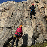 Big granite boulders with top-rope anchors and short but good routes. The south sides dry up quickly after rain showers. The north side has the hardest lines.(projects)