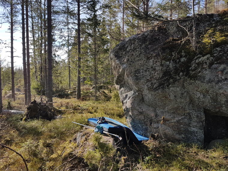 Sitstart down between boulder and rock.