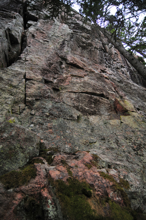 No eliminate. You can use both the arête and/or chimney if you like. FA'd with arête only.