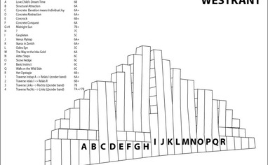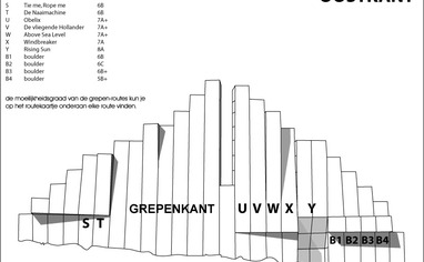 Spaarnwoude is an artificial crag. Its concrete structure is made with plaster casts of rock from the Belgium climbing area Beez. It has free entrance all year round. Each route follows a stack of concrete blocks which are 1,2 meter wide. Some exceptions exist and several variations by crossing blocks are possible.