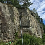 The crag consists of a continuous wall that reaches about 20 meters at its highest point. The rock quality is good, and the wall dries quickly after rainfall.
