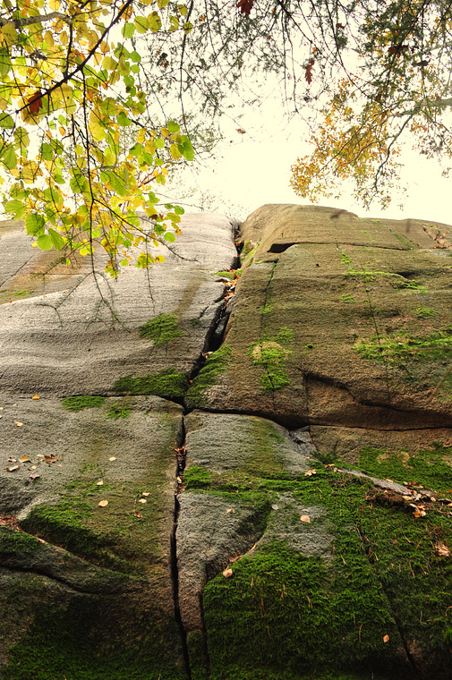 Startar i den tydliga dieder sprickan, en bit upp kliv ut på väggen till höger om diedret till sprickan, därefter osäkrat till toppen.