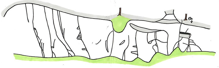 Startar på blockets vänsterkant, följ sprickan mot tallen. Avsluta på svaets vänsterkant