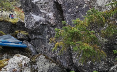 There are some very old paintings on the walls behind the big block (Schtorfinblocket) so don´t climb or put up new problems on those walls.