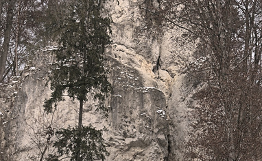 Parking is right next to the street in Wiesent-Valley at a small lay-by with an old signboard. Approaching from West drive via "Ebermannstadt" up the river towards "Behringersmühle". Parking is 1.15 km after the junction towards "Leutzdorf", about 7 km after "Muggendorf". Approaching from East drive via Gößweinstein/Behringersmühle down the Wiesent-valley towards "Ebermannstadt". Parking is to your left 1.7 km after junction towards "Waischenfeld".